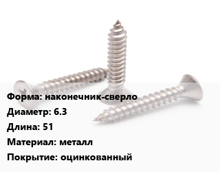 Саморез наконечник-сверло D=6.3 L=51 металл оцинкованный, упаковка 1000 шт цена от 2 820 Тг / кг, где купить, условия доставки в Таразе и Жамбылской области