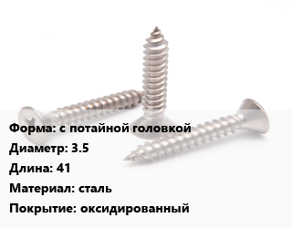 Саморез с потайной головкой D=3.5 L=41 сталь оксидированный
