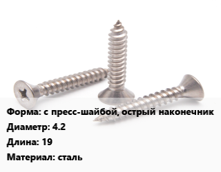 Саморез с пресс-шайбой, острый наконечник D=4.2 L=19 сталь
