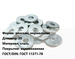 Шайба плоская, нормальная D=20 сталь оцинкованная ГОСТ: ГОСТ 11371-78