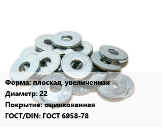 Шайба плоская, увеличенная D=22 оцинкованная ГОСТ: ГОСТ 6958-78