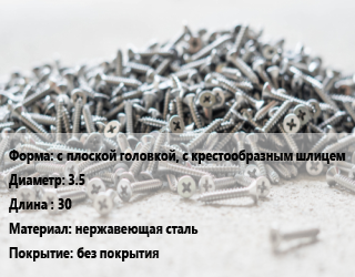 Шуруп с плоской головкой, с крестообразным шлицем 3.5х30 нержавеющая сталь без покрытия, шт цена от 149.22 Тг / кг, где купить, условия доставки в Таразе и Жамбылской области