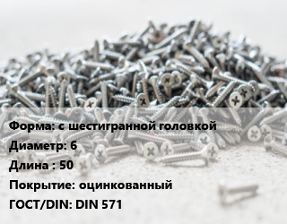 Шуруп с шестигранной головкой 6х50 оцинкованный ГОСТ: DIN 571