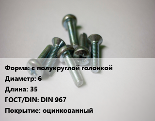 Винт с полукруглой головкой 6х35 DIN 967 оцинкованный