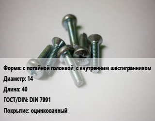 Винт с потайной головкой, с внутренним шестигранником 14х40 DIN 7991 оцинкованный