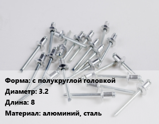 Заклепка с полукруглой головкой 3.2х8 алюминий, сталь