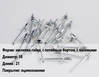 Заклепка заклепка-гайка, с потайным бортом, с насечками 10х21 оцинкованная
